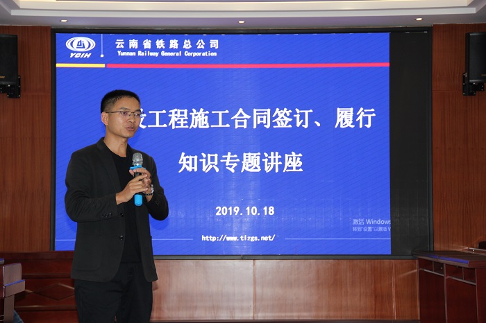為進一步加強總公司系統(tǒng)內員工就建設工程合同的簽訂以及履行過程的管控,努力做到以事前防范、事中控制為主,事后處理為輔的目標任務,總公司于2019年10月18日在公司四樓大會議室開展建設工程合同簽訂、履行知識講座??偣?span style="font-family: 宋體, SimSun; font-size: 20px; text-indent: 32px;">在家領導班子成員,生產經營、經濟管控、印章管理部門相關崗位工作人員,下屬子公司和直屬項目部生產經營、經濟管理、印章管理的分管領導以及相關崗位工作人員參加培訓。本次講座由公司法律顧問云南弘瑞律師事務所雷榮生主任律師主講。