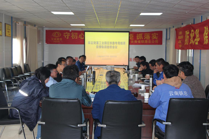 2019年9月25日11:30分,在云南鐵路工程項目管理有限責任公司的統(tǒng)一組織安排下,昆明局集團公司(科技和信息化部、運輸部、貨運部、工務(wù)部),廣通工電、車務(wù)段,滇西公司,祥云財富工業(yè)園區(qū)管理委員會,祥云SPV公司、設(shè)計、監(jiān)理等單位領(lǐng)導和相關(guān)人員,對總公司一直管承建的祥云西站牽出線延長工程進行驗收,并召開了“祥云財富工業(yè)園區(qū)鐵路專用線接軌段驗收工作”專題會議,順利通過驗收。